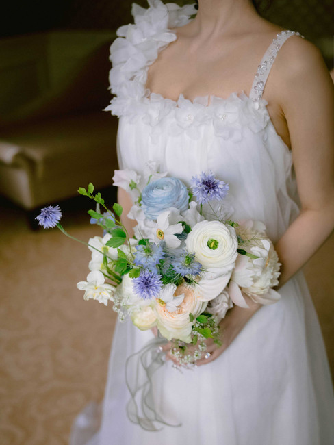 Westbury Manor 蓝白色调婚礼花艺info5173554Oct 271 min read在 Westbury Manor,花艺设计以蓝与白为主调——一种象征平衡与宁静的色彩语言。庄园柔和的光线与石墙的质感,让花艺的构图既有历史的厚度,又轻盈如风,整体配色以深邃的翠雀蓝与天蓝绣球衬托象牙白玫瑰与浅色洋桔梗,点缀少量绿意,营造出呼吸感的层次。每一处花艺都带有节奏——自然却有意,像花园里微风的律动。