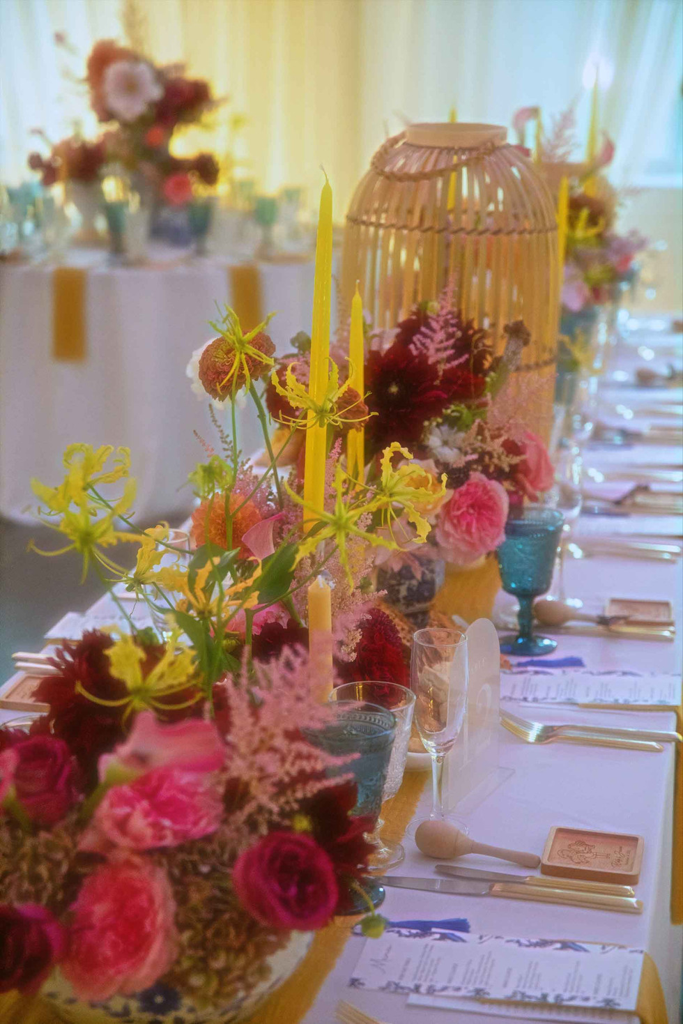 缤纷的花艺如画卷般展开,犹如洛可可时期的绘画,精致而华丽。在花束和装饰中,我们运用了青花瓷的元素,这种古老的传统瓷器为整个场景带来了东方的韵味和神秘感。